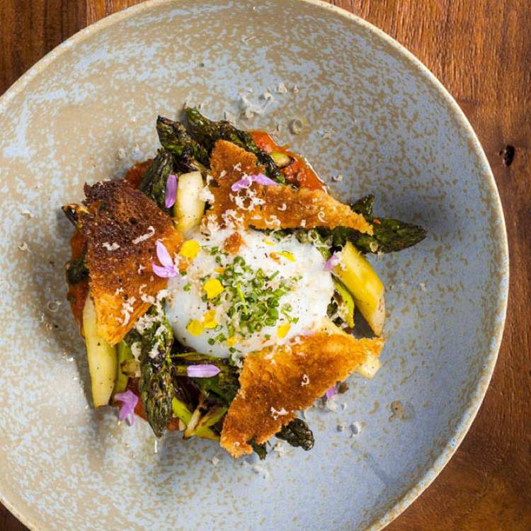 The farm egg ($11.50) is a resounding success. Two types of asparagus, wood roasted, and an acerbic pickled, comingle with carmelized feta cheese. An excellent muhammara - a Syrian spread with red pepper, pomegranate, and walnut as the dominant flavors and textures - ties it all together and makes this dish unlike any other in Las Vegas.