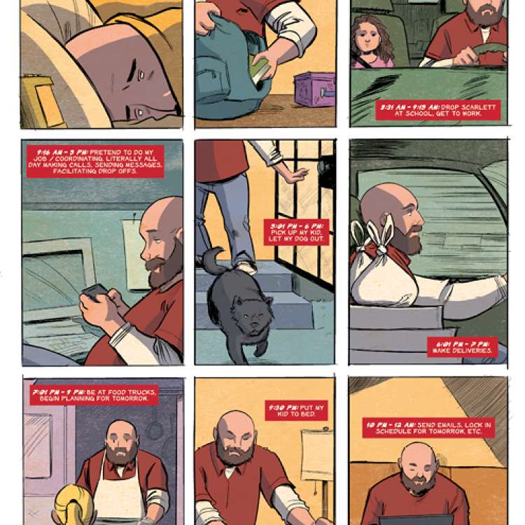 Sina Grace was next up to bat. It was cool that he chose our story to draw. I sent him a few pics of myself, my daughter, and my dog, so I could work the whole family in there. When Sina sent his first drawing of me back, I responded, “Man, even comic book me is too fat!” Sina was kind enough to trim my build, but didn’t have to.