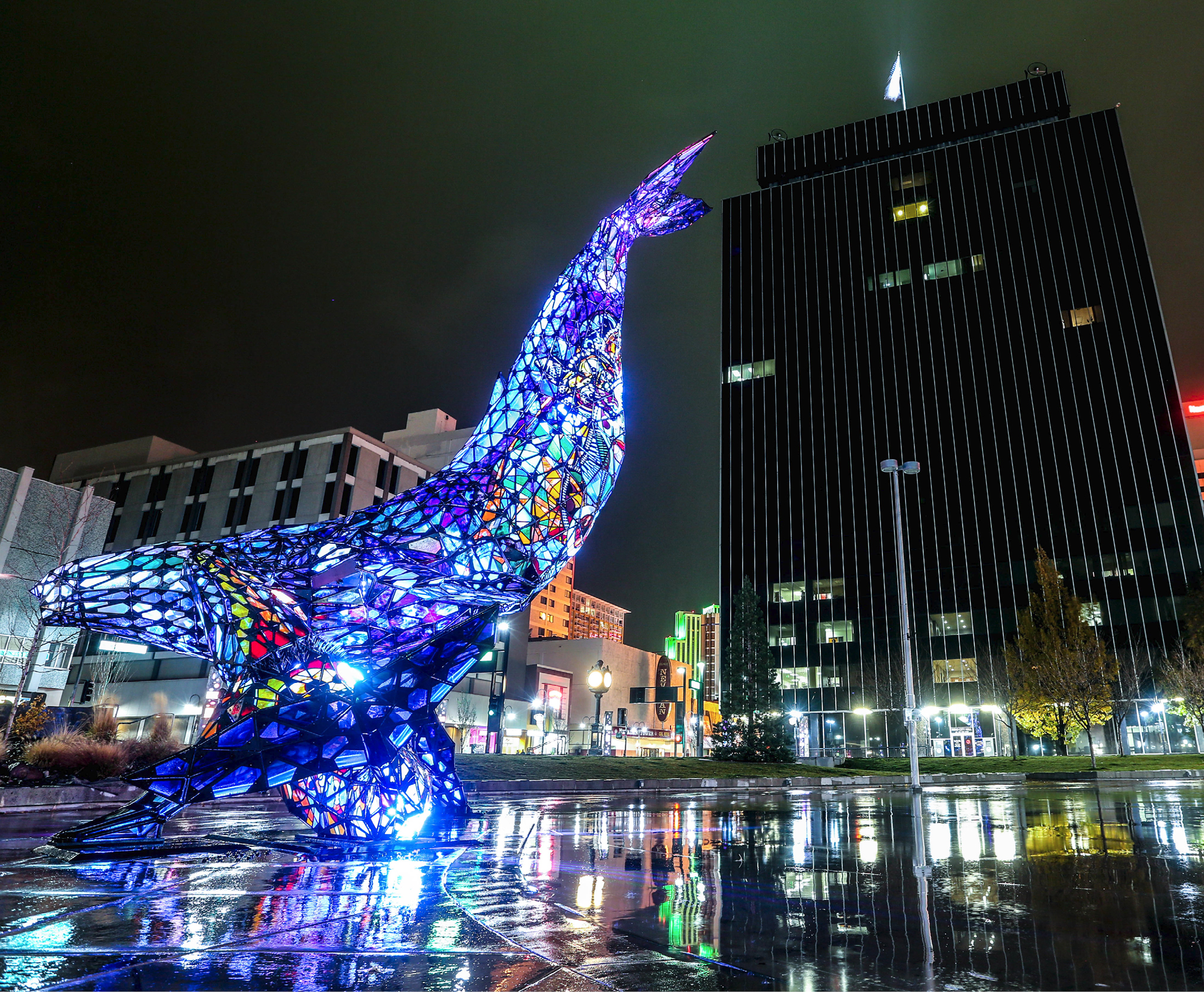 It’s a chilly winter morning in downtown Reno, and the Riverwalk District begins to stir. As the sun breaks the horizon, a fisherman stands, up to his knees, in the cold, bubbling Truckee River, widely casting his rod. Further along the rocky shore, a family plays and laughs, taking full advantage of the relative calm in the Truckee River Whitewater Park at Wingfield. Other early risers walk their dogs past steel-sculptures (and a sleeping homeless man) on the City Plaza.