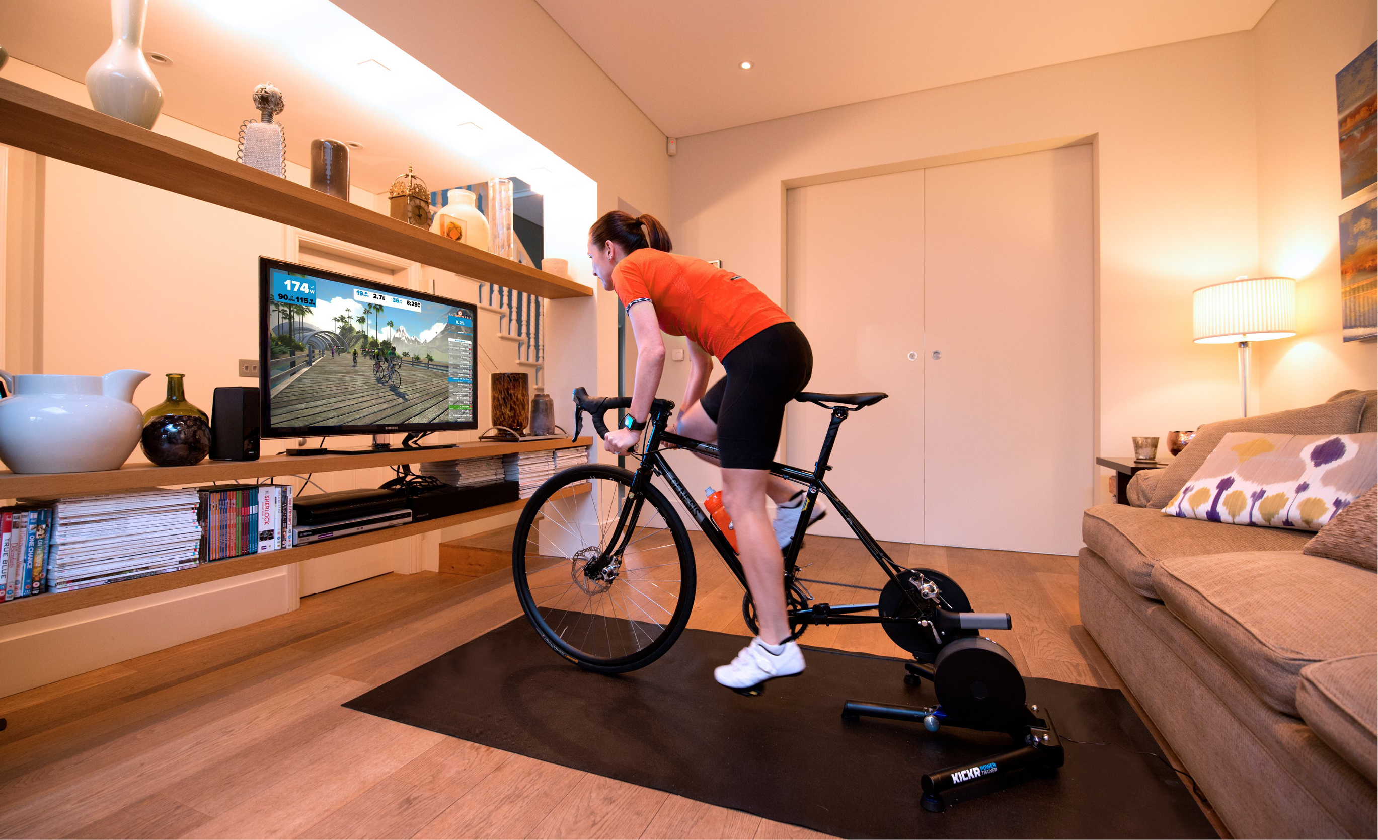 Why all the connectivity? That’s where it gets fun! See, Zwift is a training app which sets itself up as a game, so there are levels and various modes all designed to increase your abilities. Once you’re inside the virtual world, you can see yourself (well, an avatar of you) running through various landscapes and you can see other runners who are running the same course as you. You can sign up for training sessions, group runs or even races. That’s right, as opposed to the solitary, go at your own pace of the other virtual runs I’ve mentioned, Zwift figures you might also need a little bit of a push so they’ve set up racing events. No matter where you are in the world, everyone gets on their treadmills at the same time and when the countdown finishes, everyone takes off. And you can see it all happen in real time.