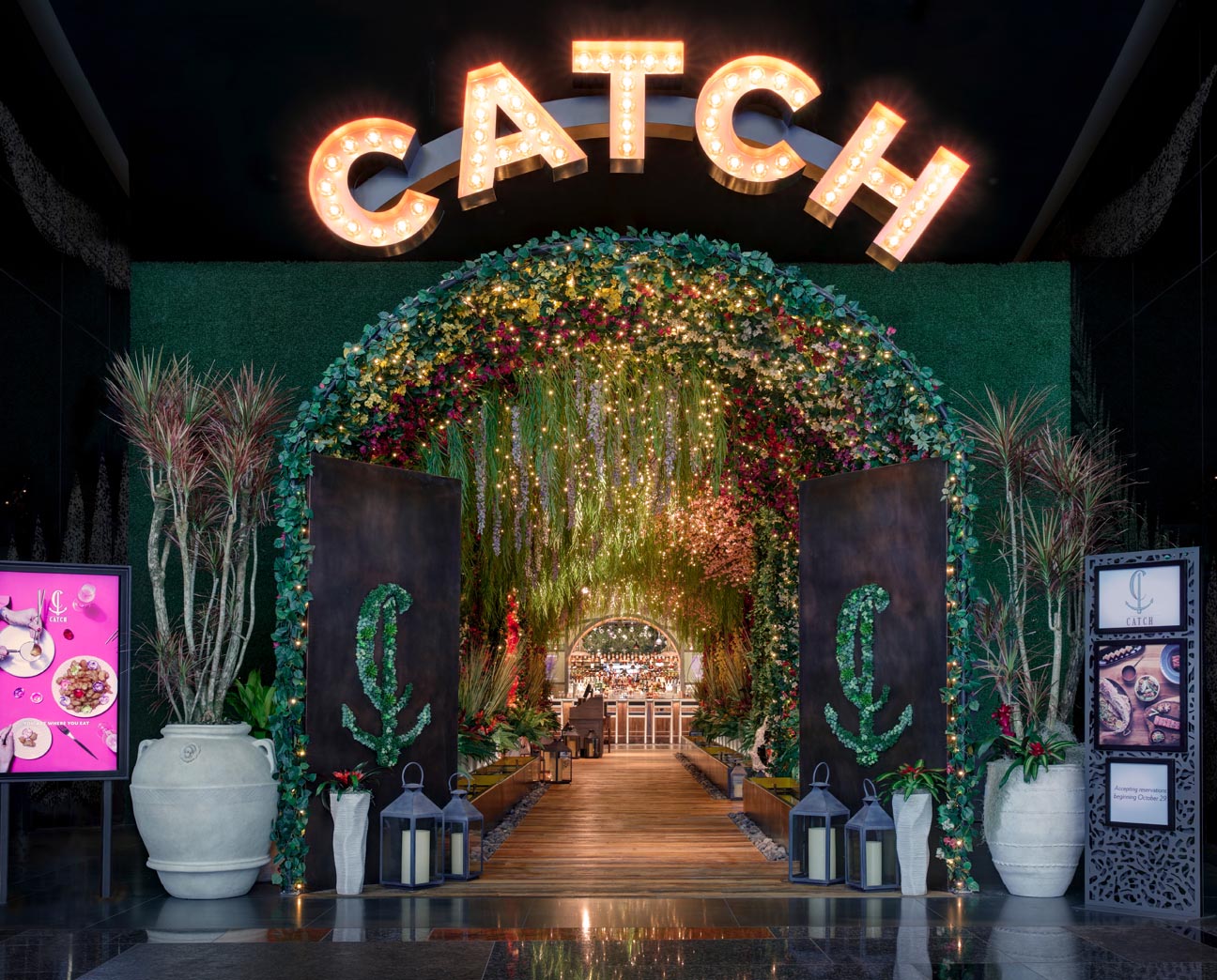 Perhaps you want to grab those likes in front of the purple-and-white-flowered angel’s wings which give those who stand in front of them the look as if they are going to fly into the sky and join a squad of magical fairies. Maybe you’d prefer to pop a squat on the Victorian-looking iron bench in front of the red, orange, and white floral wall to get your social media validation. Of course, both areas have Catch branding in prominent positions.
